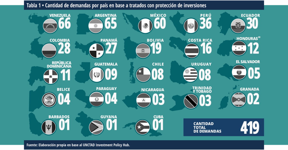 De los 42 países de ALC, 23 ya han sido demandados en el sistema internacional de arbitraje, lo que representa más de la mitad de los países de la región.
